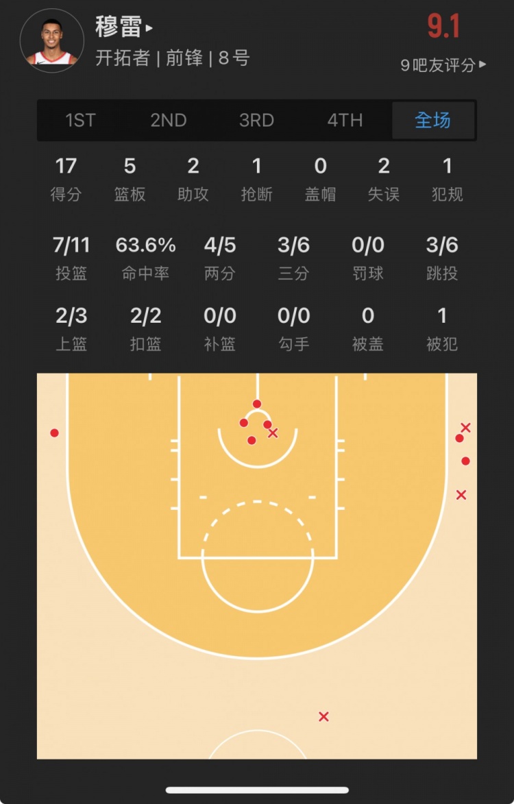 开拓者23号秀 克里斯-穆雷 出战32.7分钟
