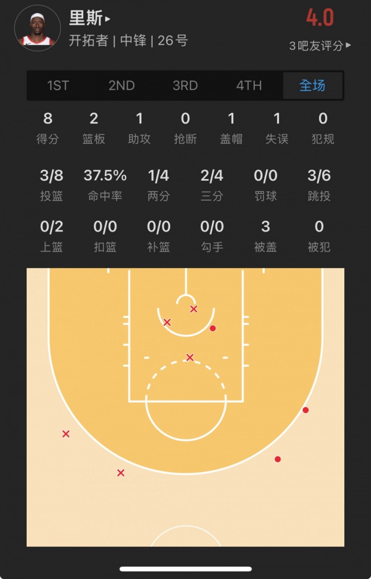 开拓者落选秀 杜普-里斯 出战16.1分钟