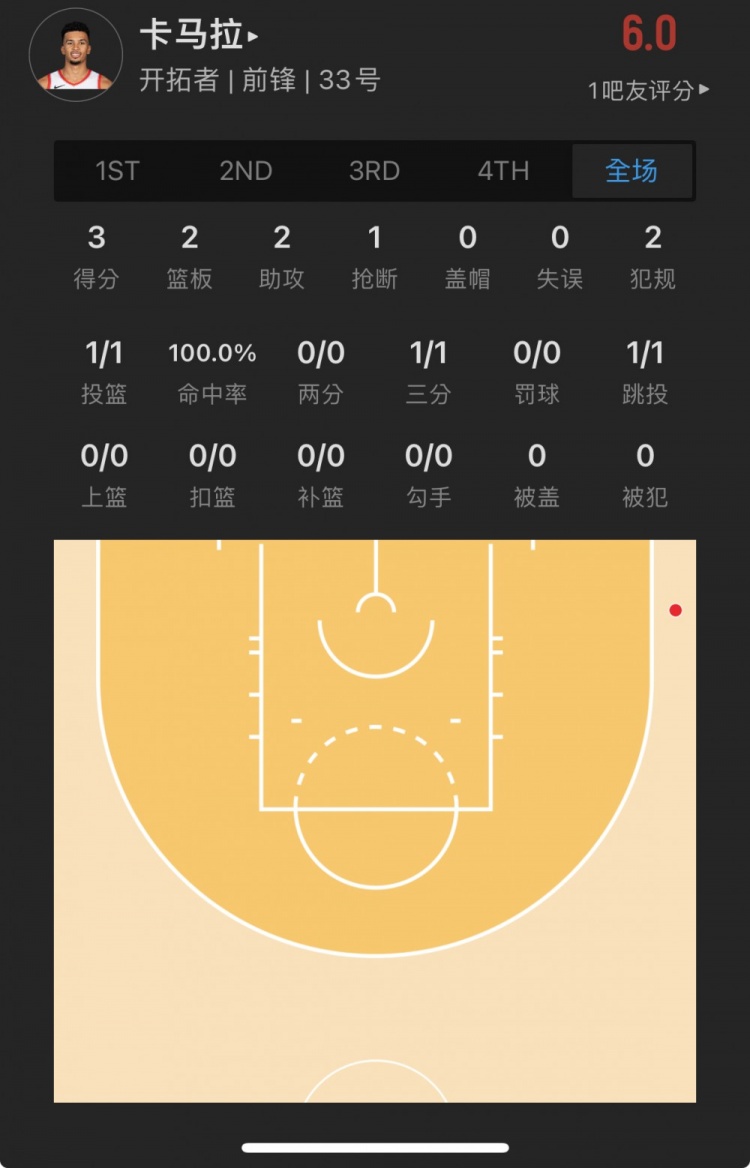 爵士28号秀 布莱斯-森萨博 出战20.2分钟