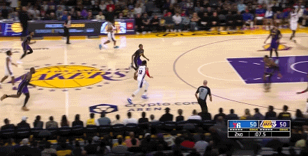 3月23日讯 NBA常规赛,76人上半场以52-50领先湖人。