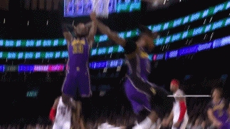 詹姆斯空切接海斯传球双手炸扣拉塞尔加塞提前庆祝