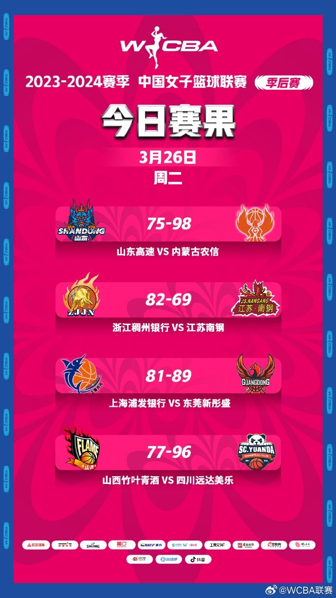 2023-2024赛季WCBA联赛季后赛1/4决赛今日4场比赛战罢。