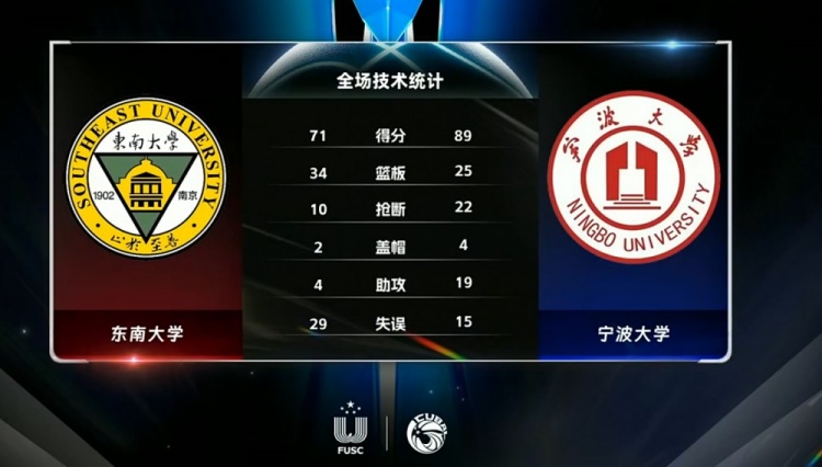 末节宁波大学手握大比分领先开始压节奏,自己虽然前3分钟仅得2分但也只丢了2分,节中又连抓对手失误打成后早早锁定胜局,这之后宁波一直维持着20分以上的优势保持到最后。最终,宁波大学89-71击败东南大学拿下4连胜。