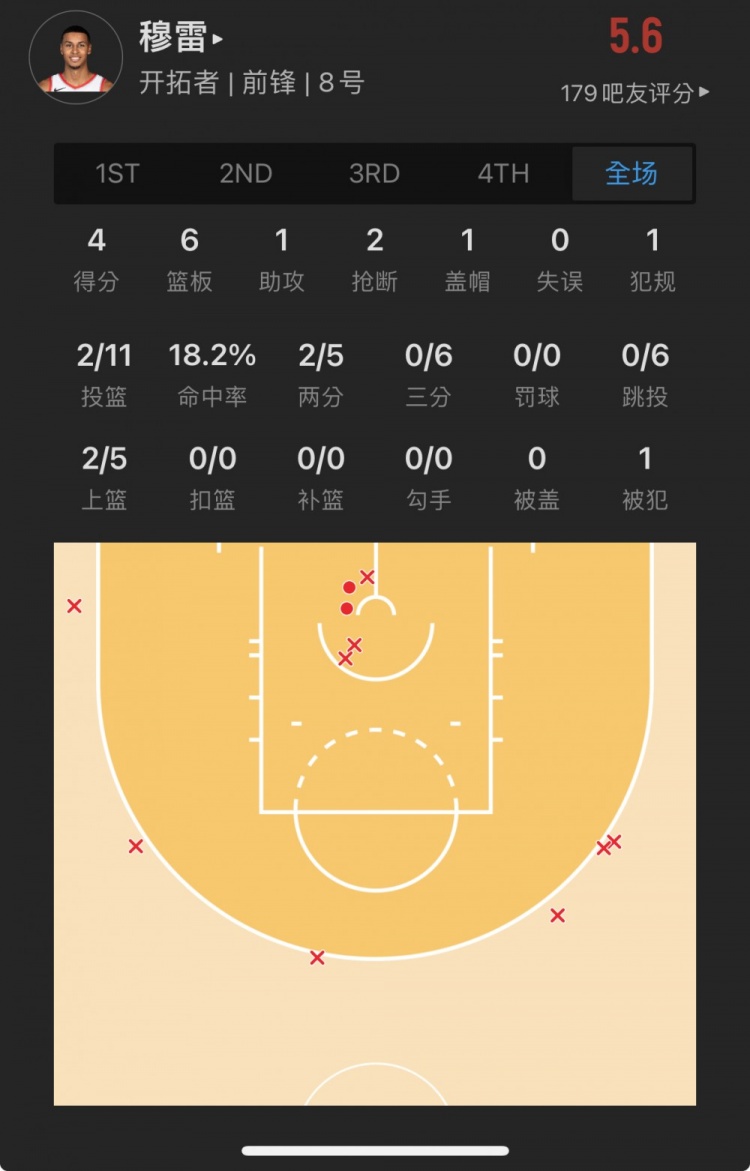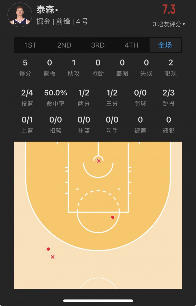 掘金37号秀 亨特-泰森 出战4.3分钟