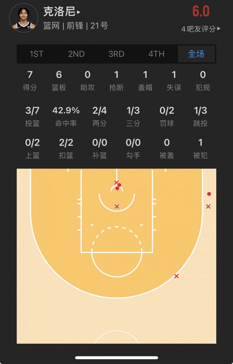 篮网21号秀 诺厄-克洛尼 出战20.9分钟