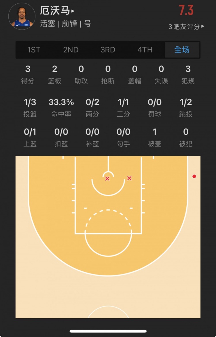 活塞落选秀 托桑-厄沃马 出战15.6分钟