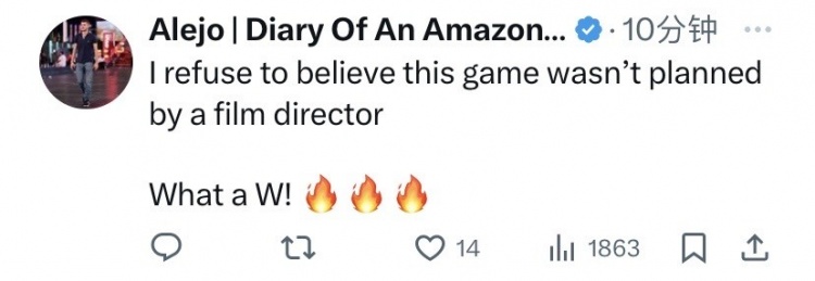 @Alejo|Dairy Of An Amazon:你要是跟我说这场比赛不是好莱坞编剧写的剧本,我才不信呢!赢得太漂亮了啊!!!