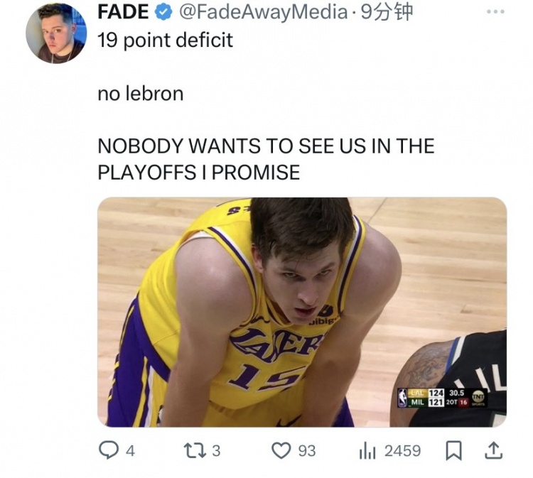 @FADE:落后19分大逆转!还是在老詹缺阵的情况下!!今天我把话撂这儿,季后赛没有球队想碰到湖人!!