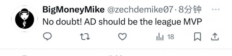 @BigMoneyMike:浓眉必须得拿MVP,毫无疑问!!