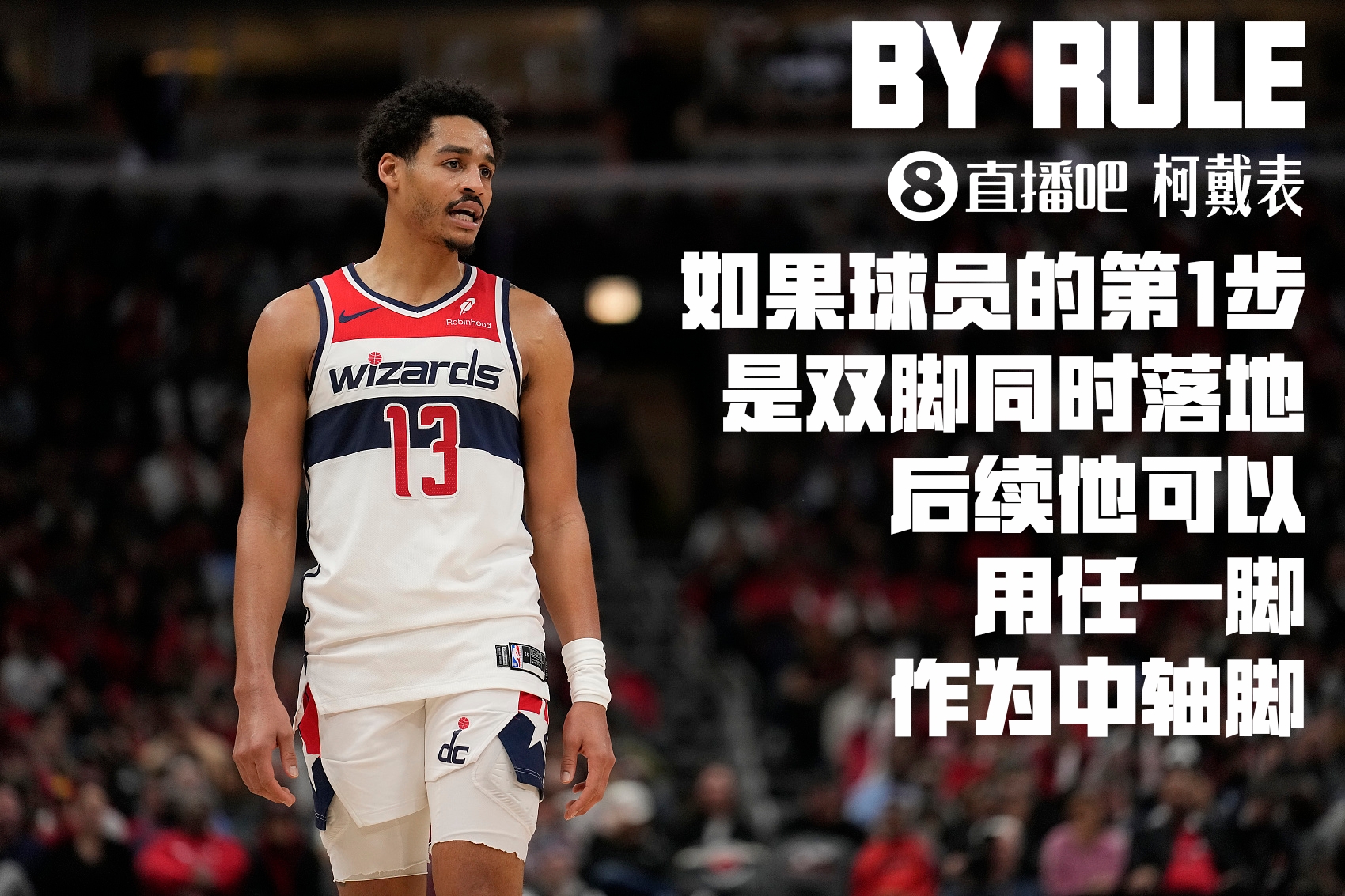 1、小卡空中合球,双脚落地形成第一步,此时他可以选择双脚的任何一只脚作为中轴脚;对应上文普尔第2条;