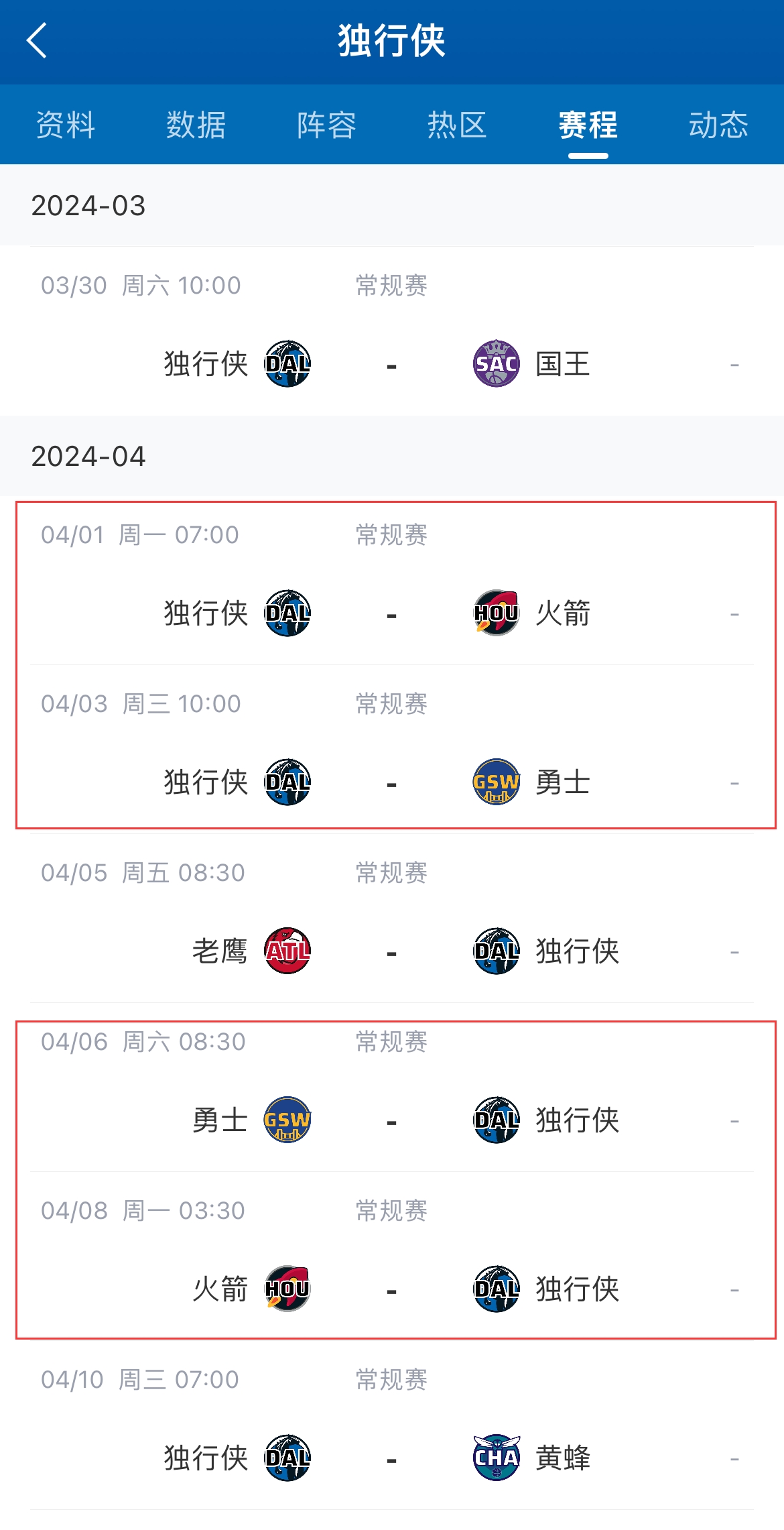 独行侠战绩来到43胜29负。本赛季最后10场比赛,独行侠要跟处在附加赛边缘的火箭和勇士各打2场比赛,这2场比赛的胜负情况也会对最终的排名产生巨大影响。