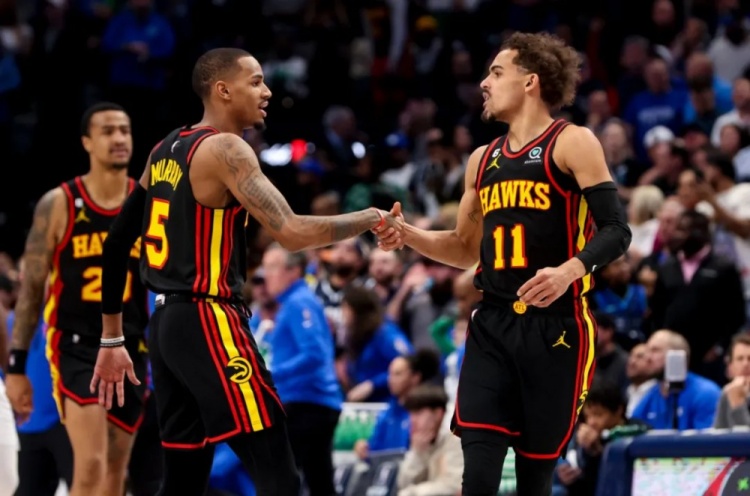 这似乎也不难解释,老鹰确实还有杨之外的发起方式,今天对凯尔特人,穆雷吃下了42.9%的回合占有率,打了一场科比式的比赛——加时赛连续三次军训波神的中投太炸裂了——光是穆雷过去1个多月,场均就能拿下26.5分+9助攻,这已经是标准的联盟一线主攻手的产量,效率却没有崩。穆雷之外,老鹰后场还有博格丹,锋线上的亨特、杰伦·约翰逊、贝(虽然双J和贝这期间各有伤缺)等等,都能扛一点输出。