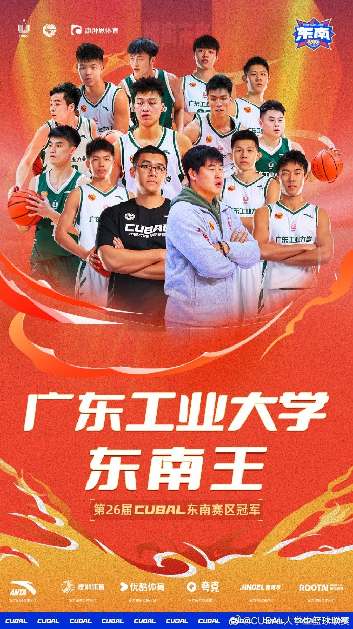 所有不可能都终会成为可能!广东工大众将其心五人得分上双拿下东南王!恭喜广东工业大学!