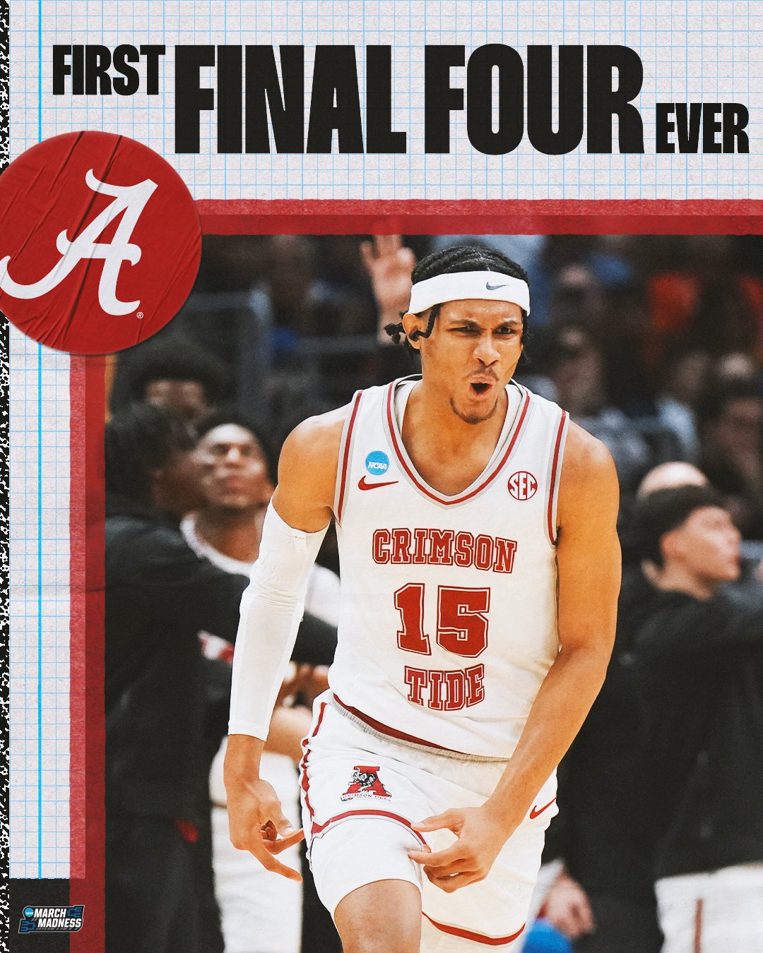 这是阿拉巴马大学队史首次进入最终4强,他们将对阵卫冕冠军康涅狄格大学。