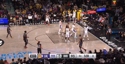 随后一回合詹姆斯再次拿球球迷起立欢呼 篮网直接上了包夹