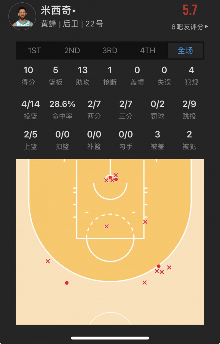黄蜂14届52号秀 瓦西里耶-米西奇 出战35.4分钟