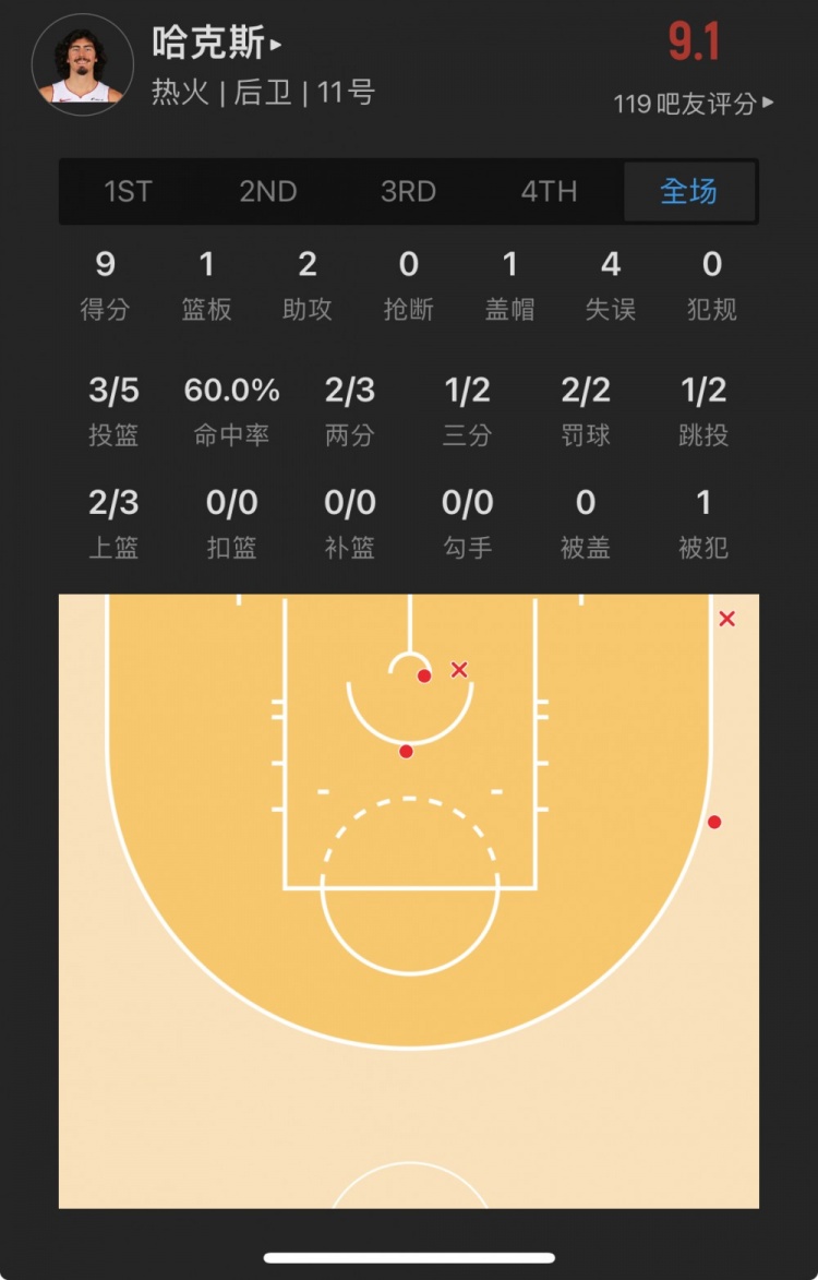热火18号秀 小海梅-哈克斯 出战19.3分钟