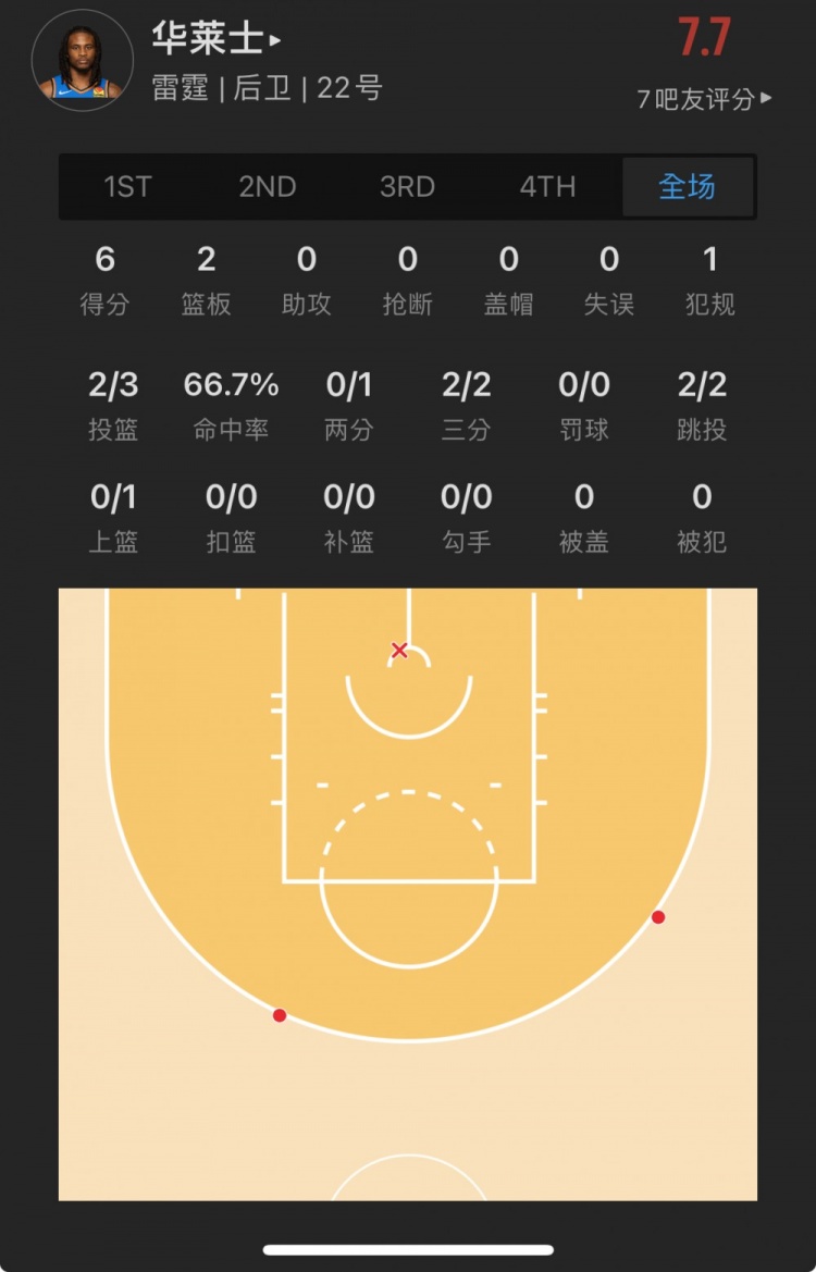 雷霆10号秀 卡森-华莱士 出战15.6分钟