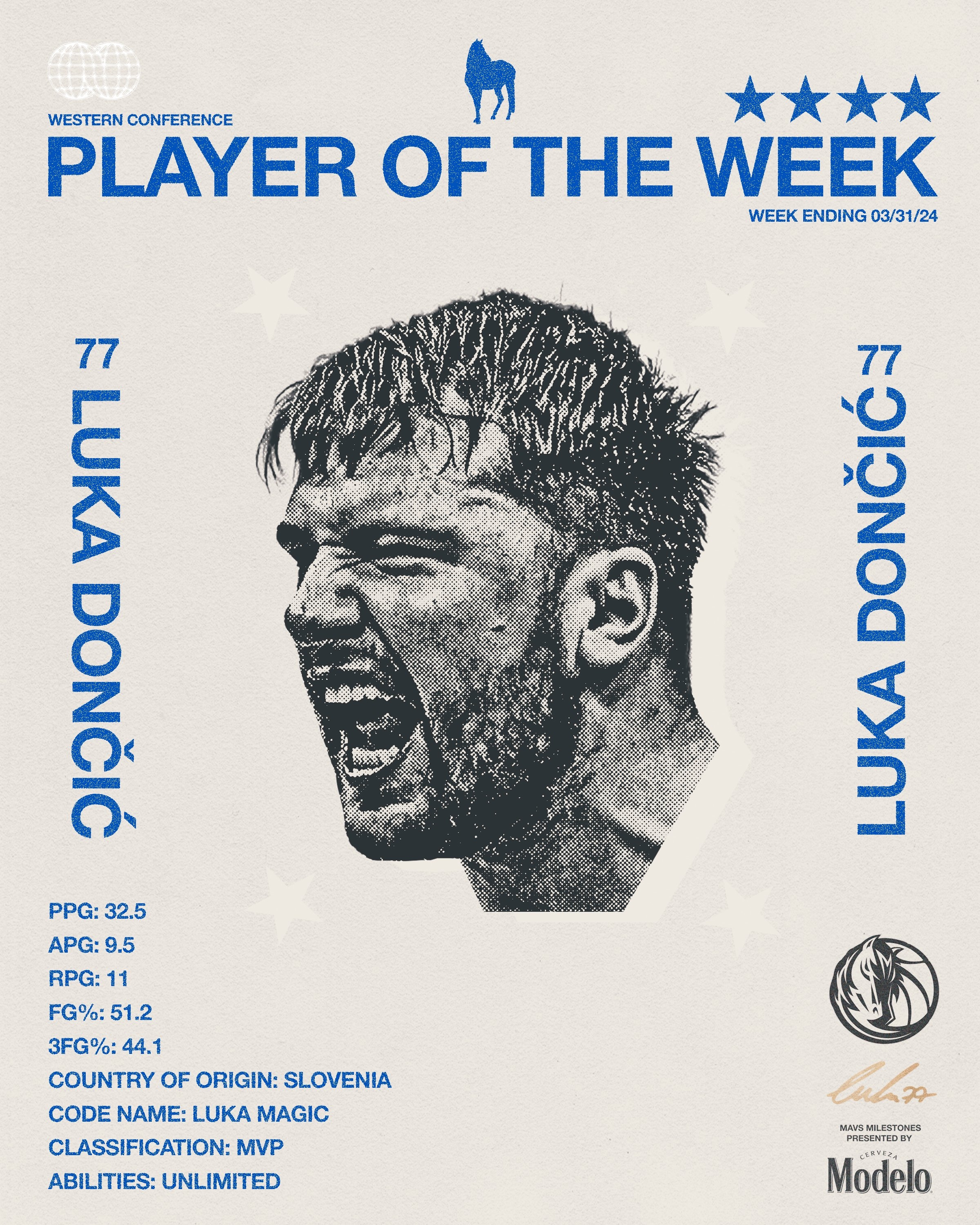 这是东契奇本赛季第4次当选周最佳球员,追平诺维茨基(2009-10赛季)保持的队史单赛季周最佳获奖次数纪录。