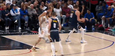 每球必争!乔治先补防按住约基奇要到争球 再拼抢地板球被吹犯规