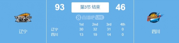 3月21日讯 CBA常规赛,辽宁三节结束93-46领先四川。