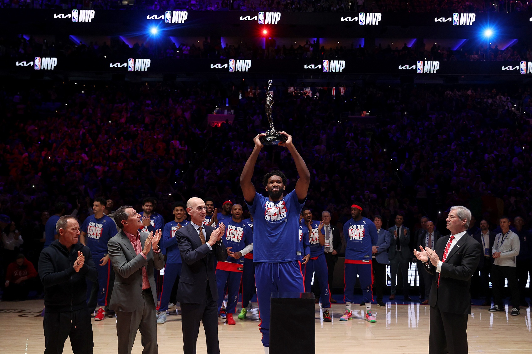 经历了这一切之后,恩比德成长为了MVP和有史以来最具统治力的的得分手——一个极具威严的人物,在肘区统治着比赛。就当这支饱受折磨的球队似乎已经稳定下来时——马克西变得很可靠,也没有了本-西蒙斯、富尔茨和哈登会不会上场打球的因素,恩比德却又一次遭遇了膝伤。