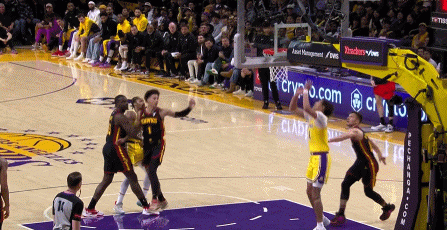 在对阵湖人的比赛中,杰伦-约翰逊落地踩到卡佩拉导致脚踝受伤。在那场比赛中,受伤前他曾隔扣里夫斯。