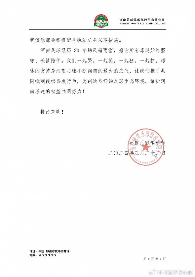 维护河南球迷的合法权益是我俱乐部义不容辞的长期责任,如您发现任何疑似侵权的行为,敬请将相关证据发送至俱乐部官方电子邮箱hnfc1994@163.com进行投诉举报,我俱乐部会积极配合执法机关采取措施。