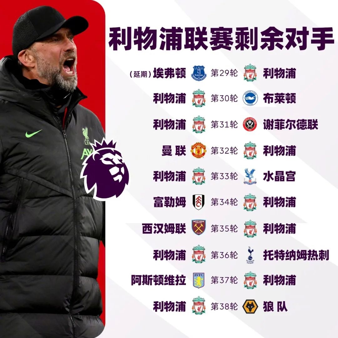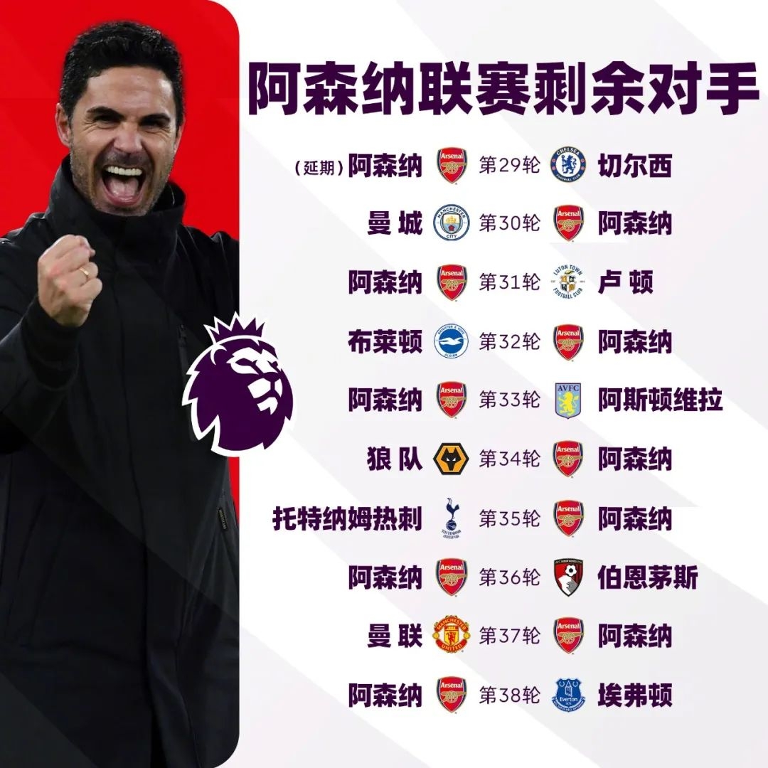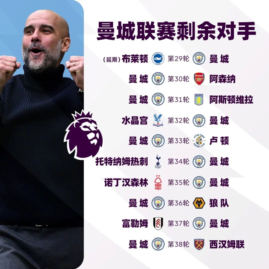 本赛季英超前三名剩余赛程一览,你最看好谁?