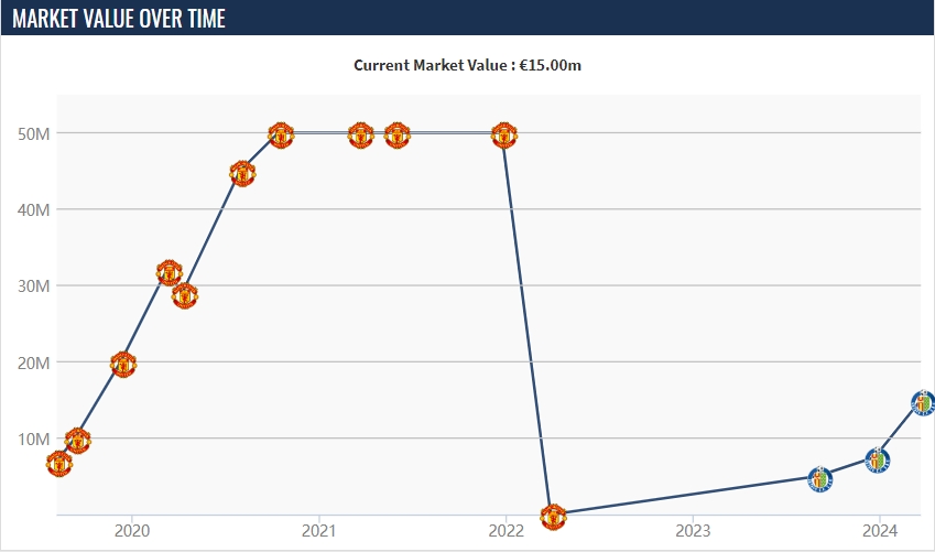格林伍德本赛季已代表赫塔费各项赛事出战27场比赛,贡献8球5助攻。他的德转身价也从0开始一路上涨,500万,750万,再到最新的1500万欧元。