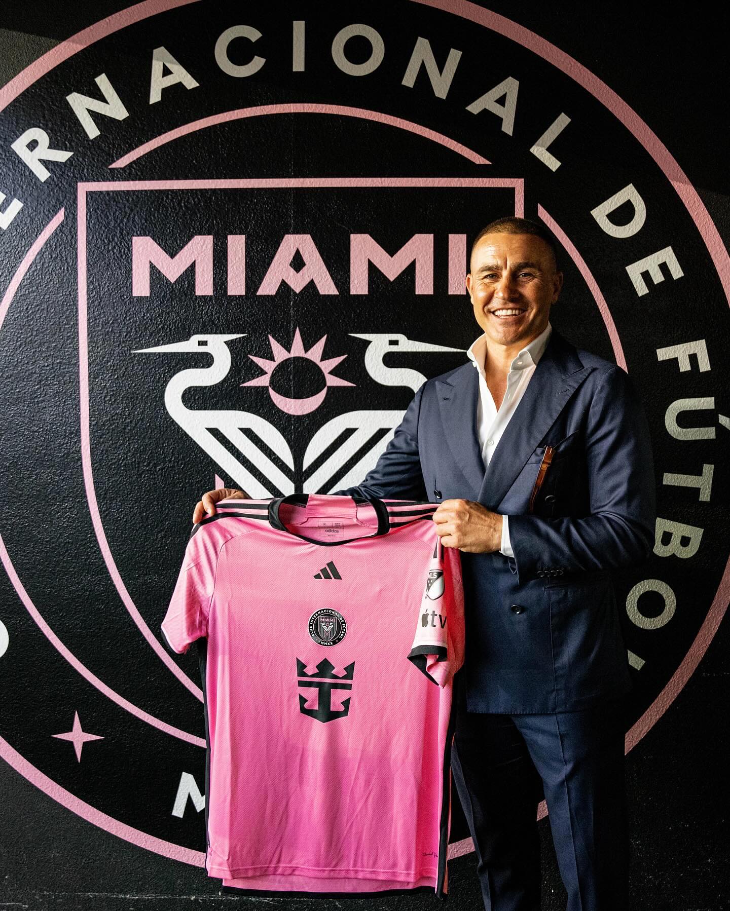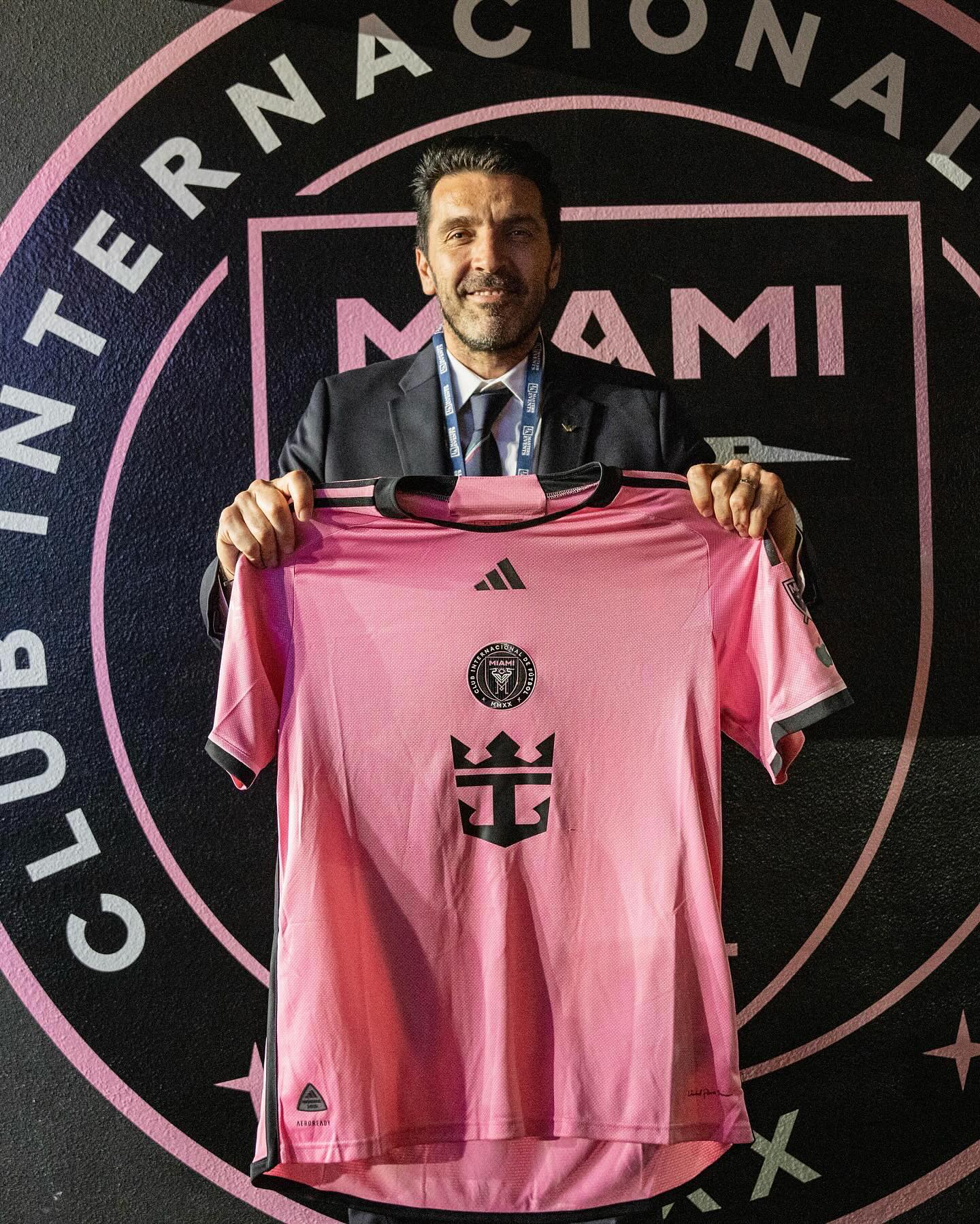 意大利国家队前往美国参加友谊赛,卡纳瓦罗、马尔蒂尼、布冯获赠迈阿密国际球衣。