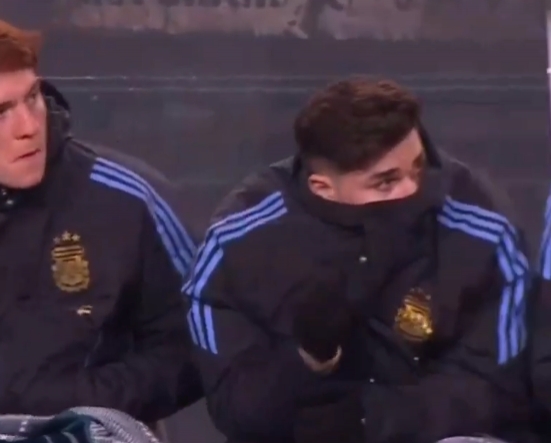 阿尔瓦雷斯未登场,在替补席上,阿尔瓦雷斯只露出了半张脸。