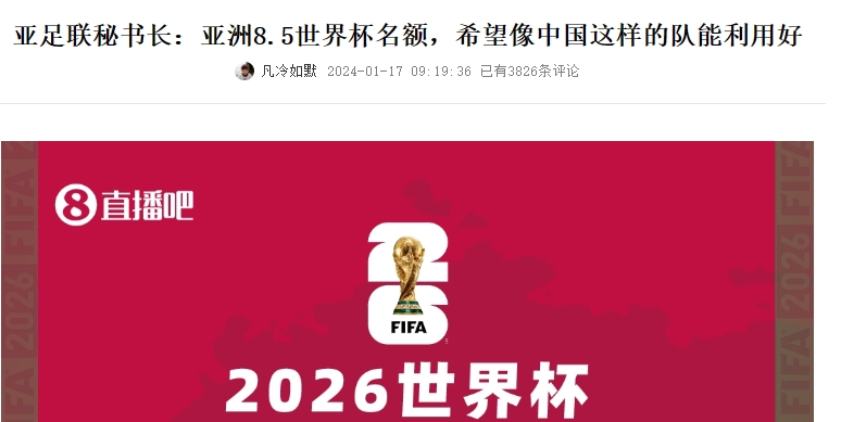 我们希望像中国队这样的球队能够利用好这8.5或9个给亚洲的名额。