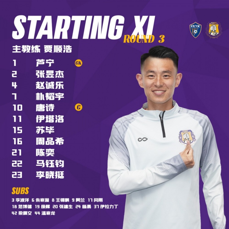2024赛季中甲联赛第3轮,云南玉昆VS黑龙江冰城首发阵容