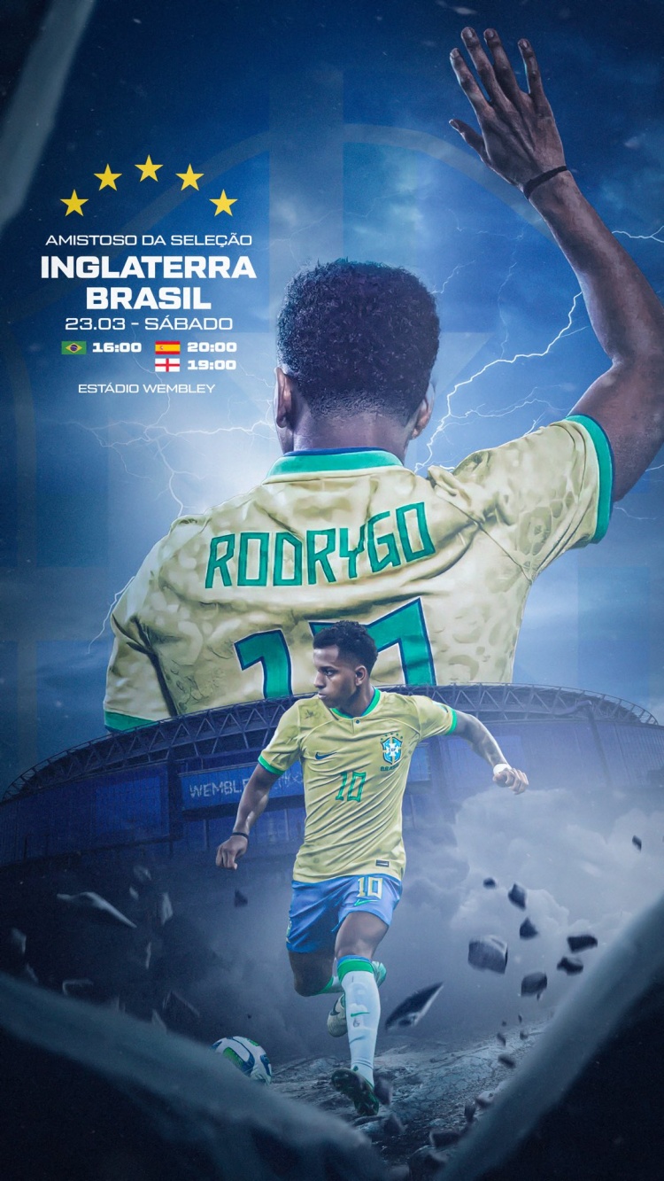 3月23日讯北京时间明天凌晨3:00的国际友谊赛,巴西将对阵英格兰。赛前,罗德里戈晒出海报预热这场焦点战。