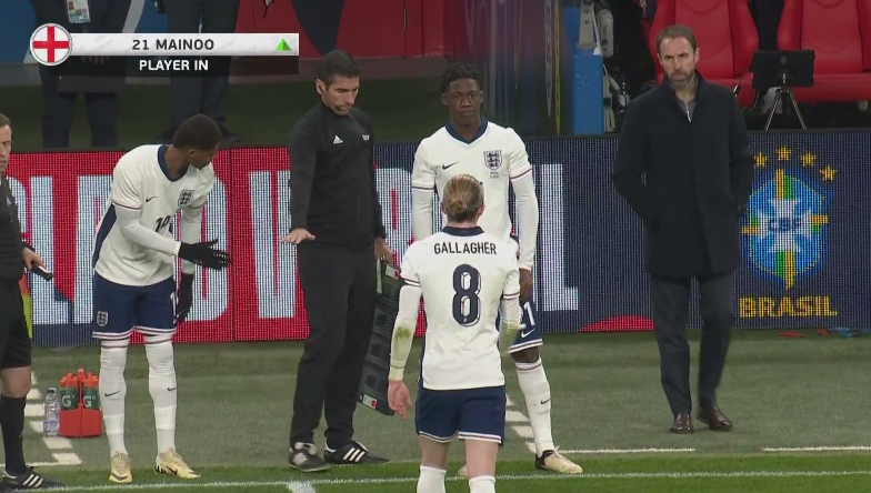 英格兰vs巴西第75分钟,18岁曼联中场梅努迎英格兰队首秀