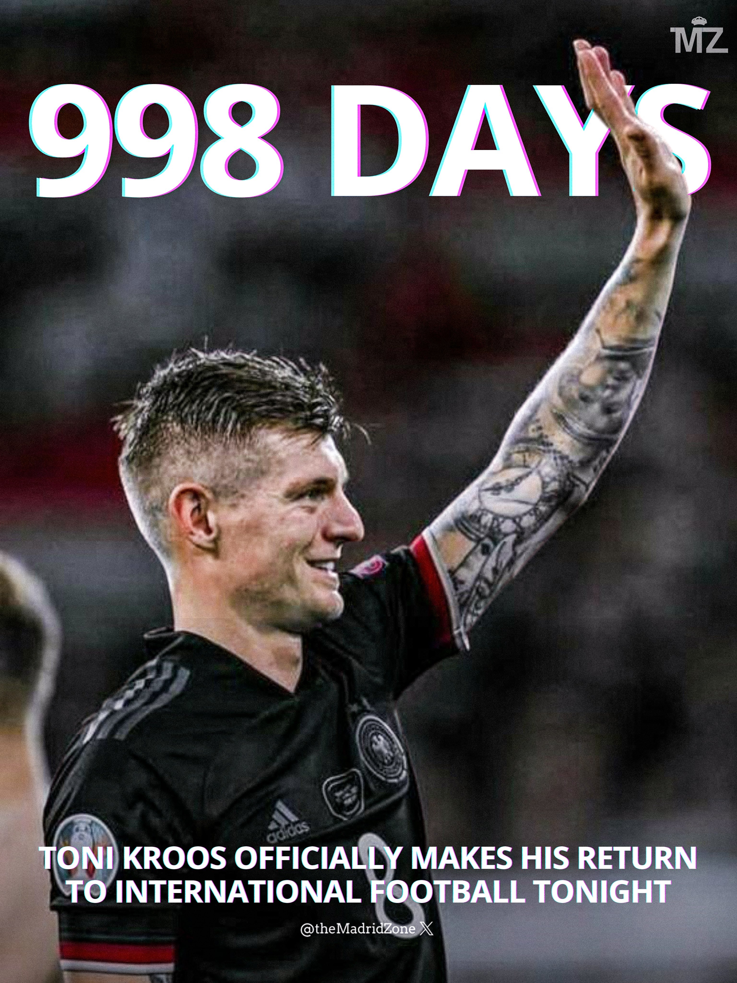 03月24日讯 德国vs法国的友谊赛,克罗斯先发迎来回归国家队后的首秀,时隔998天再为德国出战。