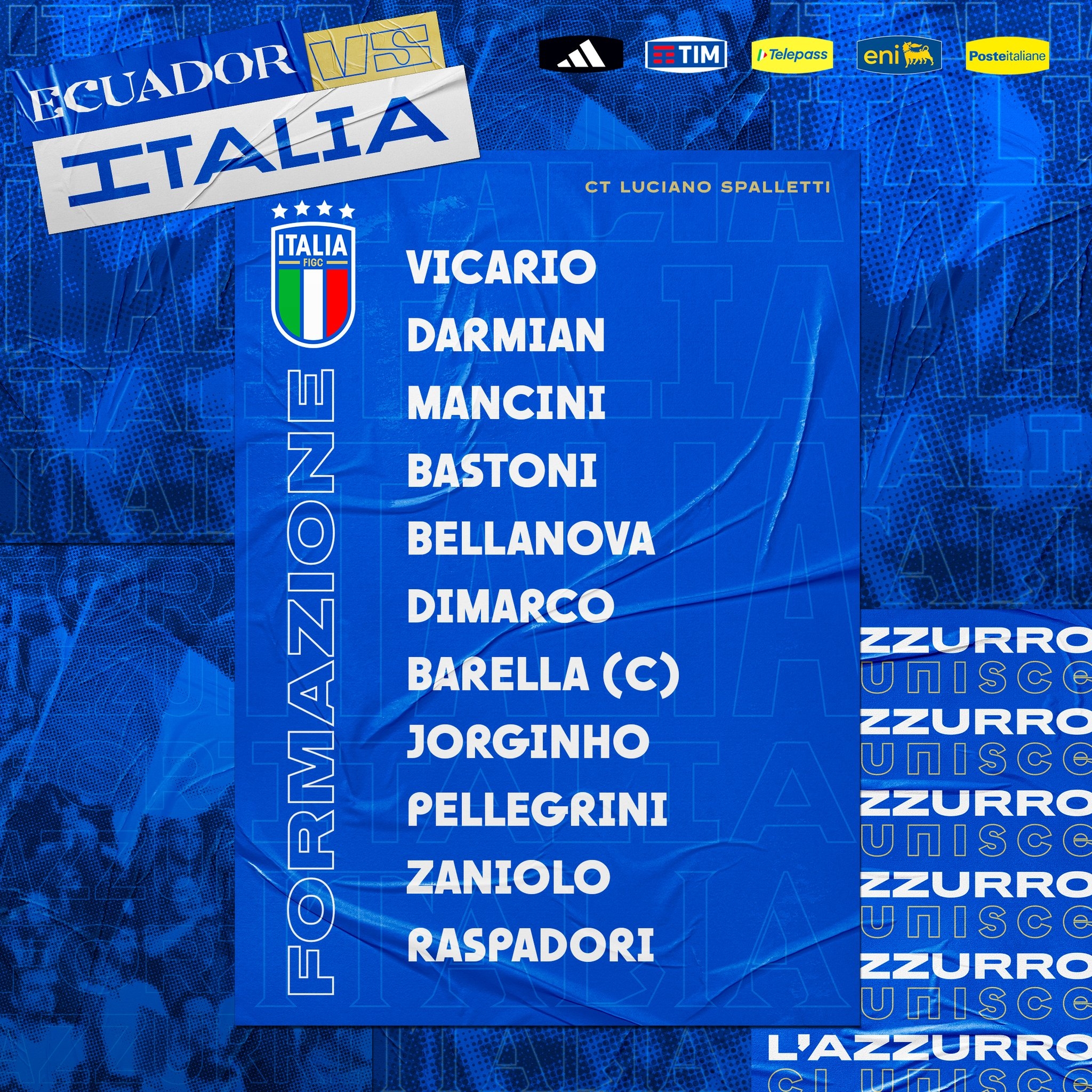 意大利上场友谊赛2-1击败委内瑞拉,本场对阵厄瓜多尔排出的首发与上一场完全不一样。