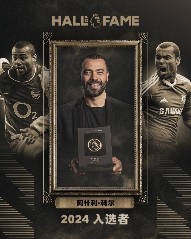 3月25日讯 官方消息,阿什利-科尔直接入选2024年英超名人堂。