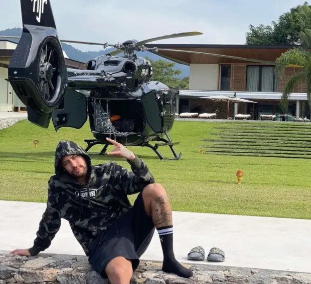 这架梅赛德斯直升机,重达 3.7 吨,拥有两个涡轮轴发动机,可在夜间自动飞行,造价约 1000 万英镑,是内马尔于2019年购买的,当时他还在巴黎圣日耳曼队踢球,内马尔在此飞机的十个真皮座椅上加上了蝙蝠侠的标志,机身上还有内马尔名字 "NJR”的缩写。