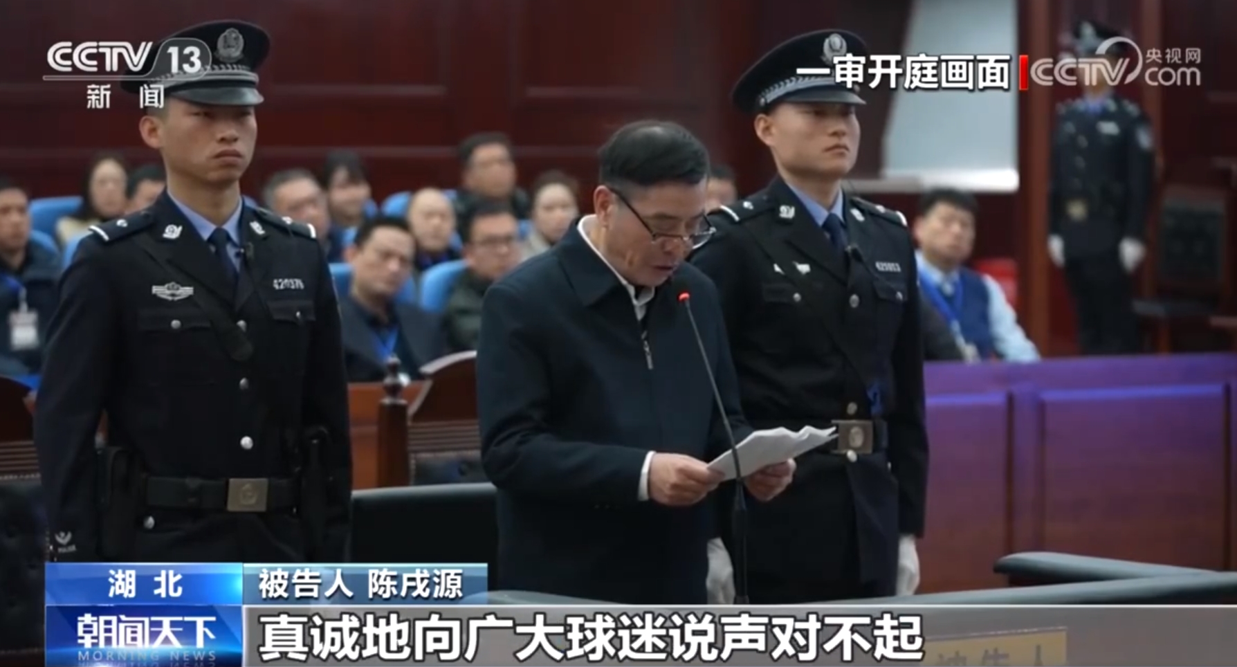 03月26日讯 央视新闻,中国足球协会原主席陈戌源受贿案,中国田径协会原主席于洪臣受贿案,中国足球协会原常务副秘书长兼国家队管理部原部长陈永亮受贿、行贿案,中国福特宝足球产业发展公司原总经理、中超联赛有限责任公司原总经理董铮受贿案,武汉全民健身中心原副主任刘磊受贿、行贿案,将在湖北多地分别一审公开宣判。
