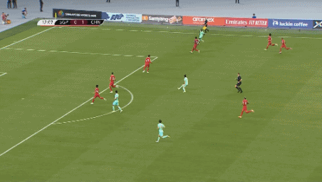 第17分钟,张玉宁边路强行突破后传中出了底线。↓