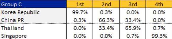 03月27日讯 世预赛亚洲区已进行4场比赛,大数据博主We Global Football更新了各队晋级概率。