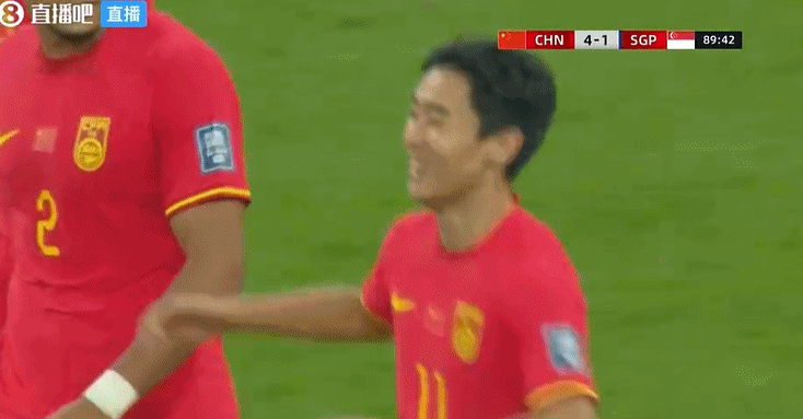 03月27日讯 国足vs新加坡最后时刻,武磊助攻韦世豪破门。随后韦世豪跳向王大雷庆祝。
