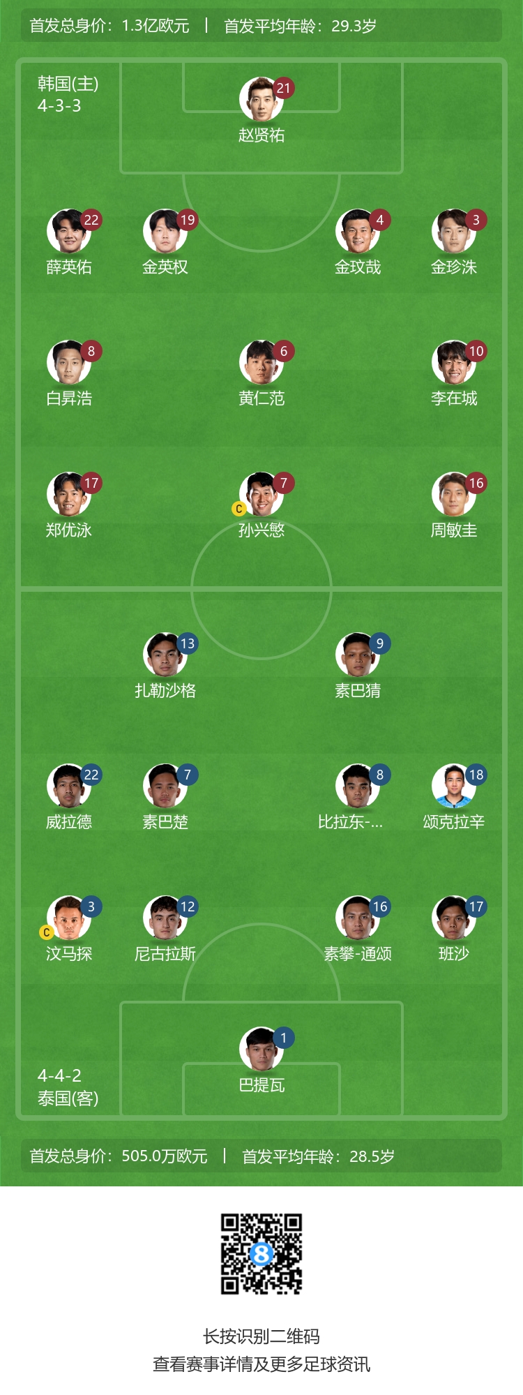 3月21日讯 北京时间19点,世亚预第二阶段,韩国主场迎战泰国,双方公布首发。