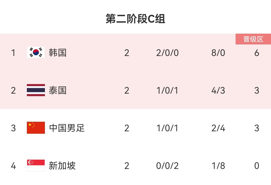 进入世预赛第二阶段,新加坡先是客场0-5不敌韩国,后在主场1-3不敌泰国。目前还未得一分,排名小组垫底。
