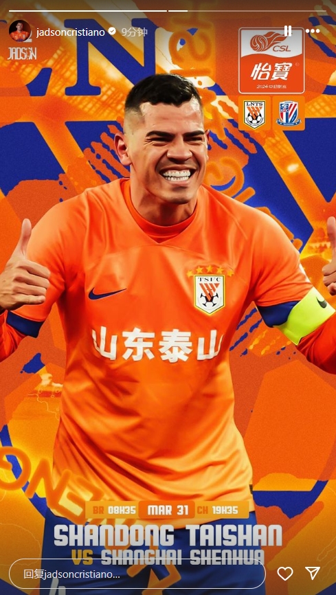 03月30日讯 北京时间3月31日19:35,中超第3轮山东泰山将在主场迎战上海申花。贾德松在社媒上晒出了赛前海报。