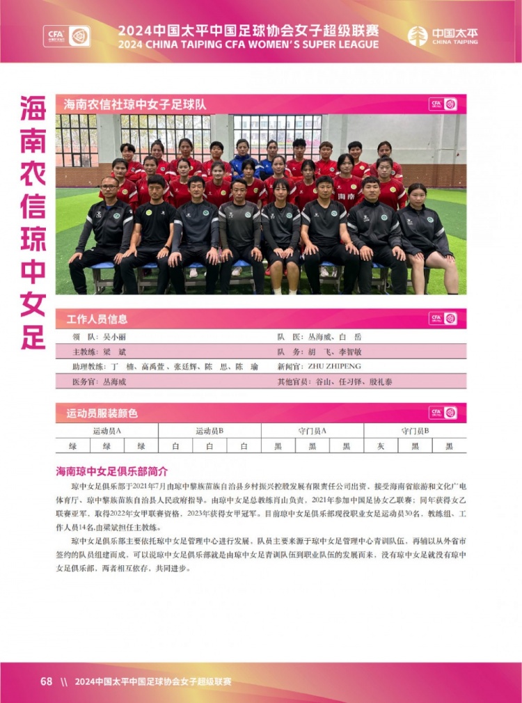 球队巡礼(三):永川茶山竹海橙狮女足、河南万仙山女足、陕西志丹女足、海南农信琼中女足