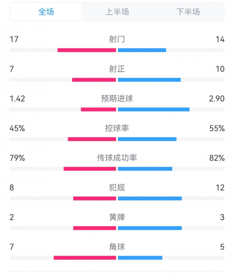 预期进球1.42-2.90