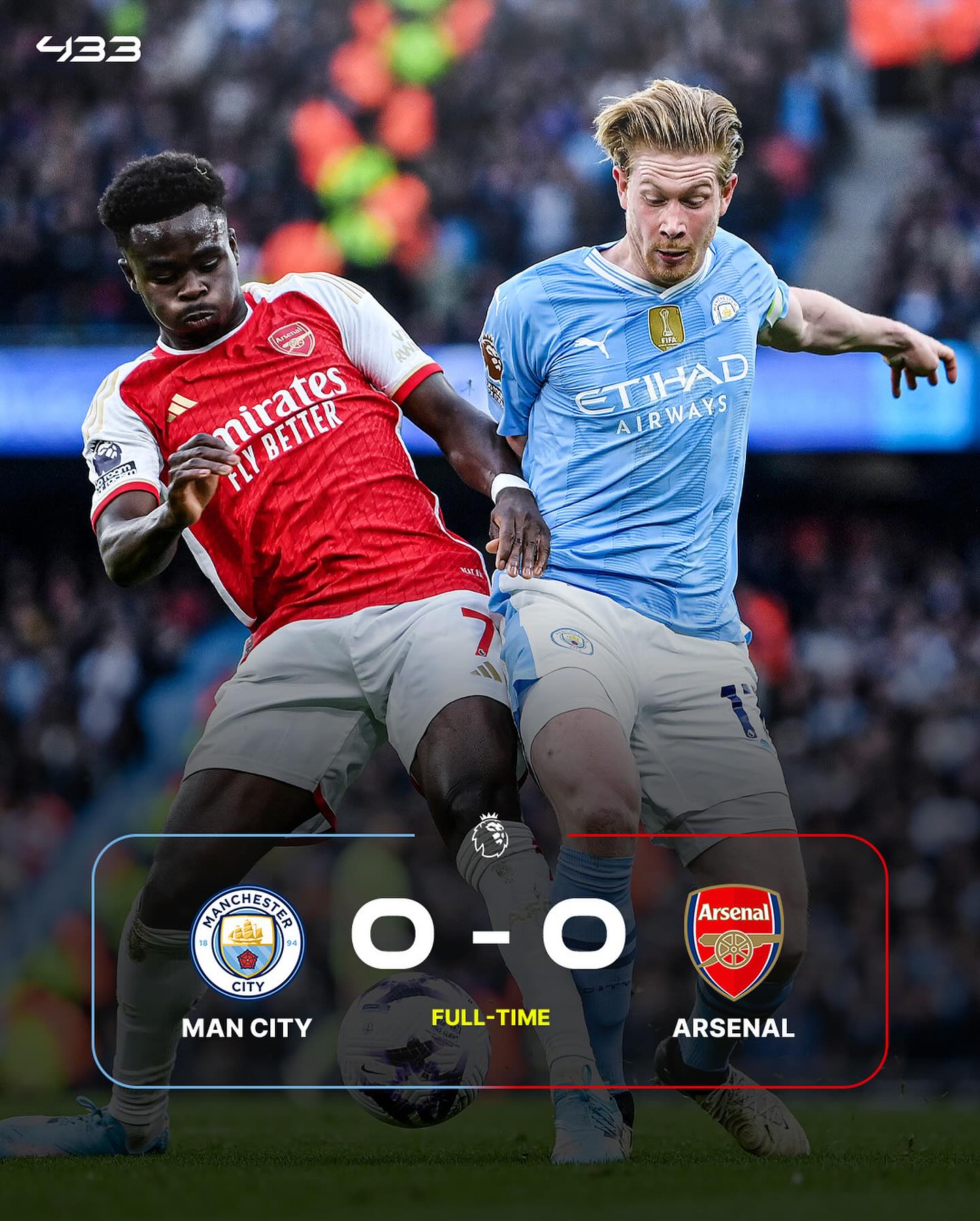 英超本轮焦点战,曼城主场0-0战平阿森纳。
